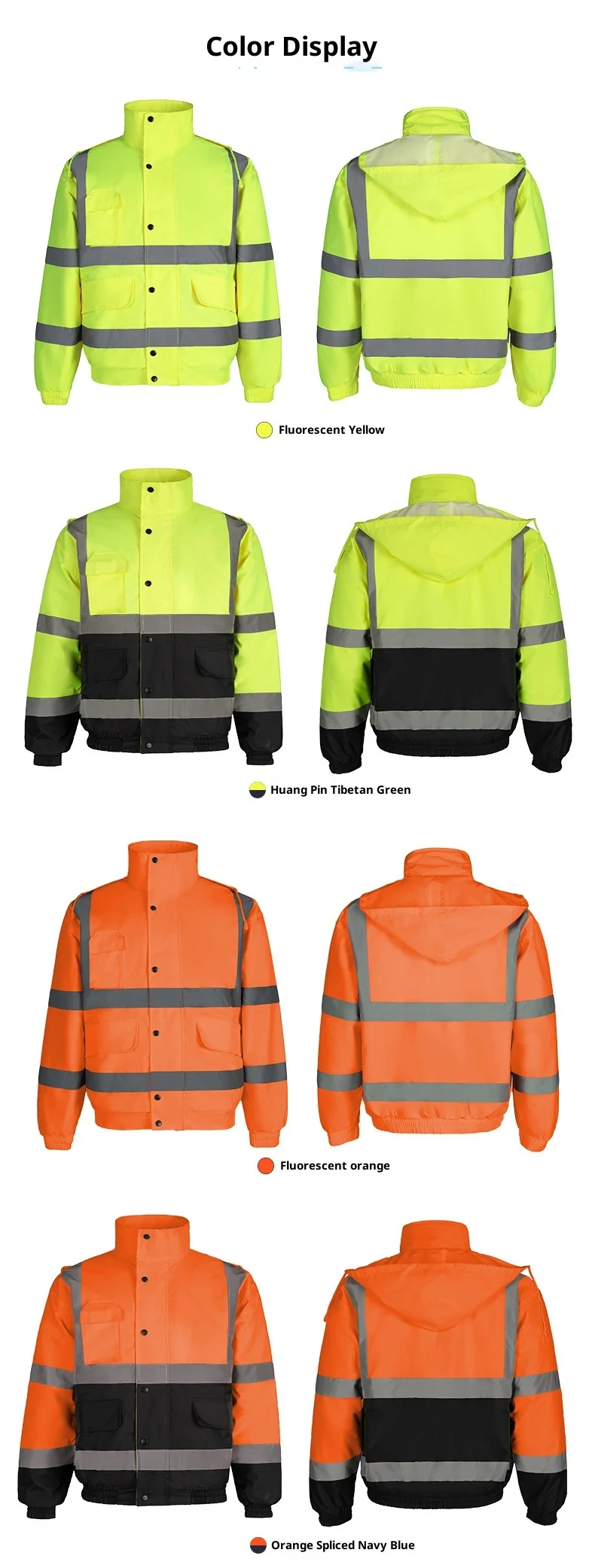 Aspectul cu dungi, culorile, etichetele și logo-urile pot fi personalizate pentru a se potrivi cu standardele uniforme existente sau pentru a crea o nouă colecție. Acestjachetă bomber de siguranțăeste o bază solidă pentru distribuitori, mărci și antreprenori care au nevoie de aprovizionare constantă.